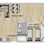 הנכס כולל מטבח מצויד ו-2 חדרי אמבטיה. הדירה בעלת 2 חדרי שינה.